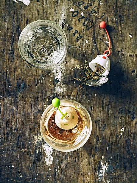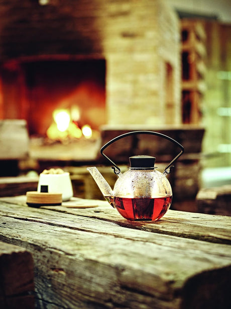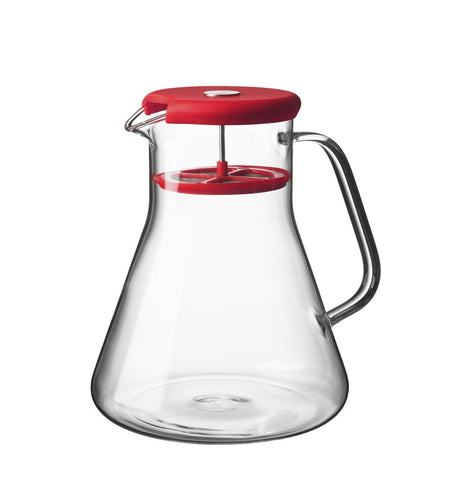 Glass teapot with clip handle & stainless steel filter - Red