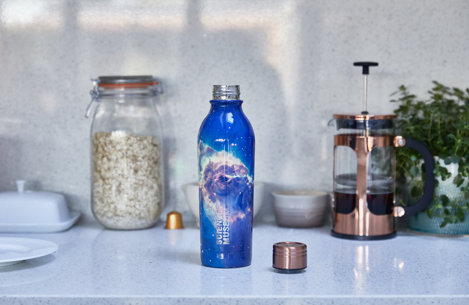 How to make an ethical statement in style? Say no to single-use un-recyclable cups and bottles A sophisticated and reusable way to take your drink with you and keep hydrated, this leak-proof bottle is insulated to keep drinks hot for 20 hours or cold for 30 hours. A double walled stainless steel water bottle with an internal copper coated layer for that added performance and insulation. The unique and stylish design is combined with high-quality finish, making your every-day aesthetic that bit sleeker. Dish-washer friendly, making it that much easier… Invest and you’ll never need to buy an expensive water again. Built to perform. Designed to impress. Have an out of this world drinking experience if you pick the Nebula One Bottle.